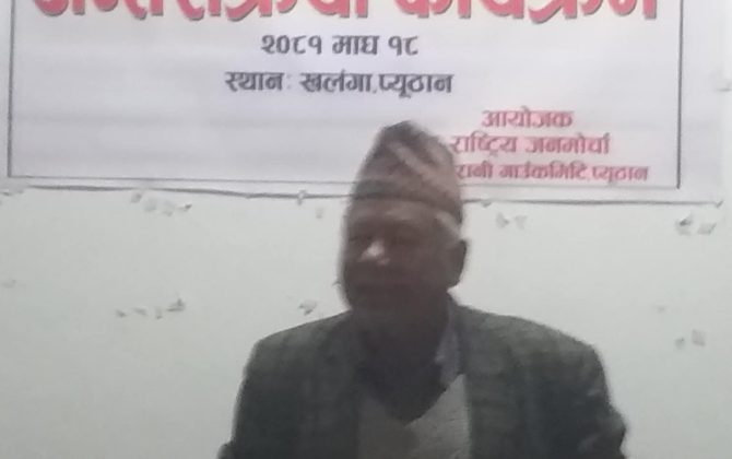 पुरा पढ्नुहोसप्युठान माघ १८ गते “संघीयता र राष्ट्रियता” बिषयक अन्तरक्रिया कार्यक्रम मल्लरानी गाउँपालिकाको केन्द्र तथा जिल्ला सदरमुकाम खलंगामा सम्पन्न भएको छ। • राष्ट्रिय जनमोर्चा मल्लरानी गाउँपालिका समितिको आयोजनामा भएको अंतरकृया कार्यक्रममा प्रमुख अतिथिको आसनबाट बिचार प्रकट गर्दै...