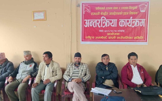 पुरा पढ्नुहोसराष्ट्रिय जनमोर्चा घोराही उपमहानगर समितिले घोराही उपमहानगर पालिकाले मालपोत र ब्यबसायीक कर वृद्धि गरेकोमा त्यसको निन्दा तथा भ्रत्सना गर्दै उक्त कार्यको बिरोध गरेको छ । उपमहानगर समितिका अध्यक्ष मनिराम खानालले प्रेस बिज्ञप्ती मार्फत उपमहानगर...
