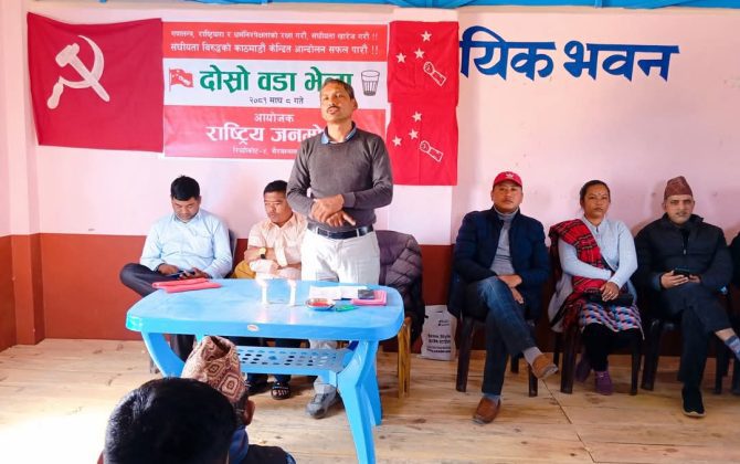 पुरा पढ्नुहोसराष्ट्रिय जनमोर्चा पाल्पाको २ महिने साङ्गठनिक अभियान चलाएको छ।जस अन्तरगत रिब्दिकोट गाउपालिका -४भैरबस्थानको दोस्रो भेला सम्पन्न भएको छ।भेलाले ओम बहादुर रानाको अध्यक्षता मा १५ सदस्यीय नयाँ समिती चयन गरेको छ।भेलाको उदघाटन राष्ट्रिय जनमोर्चाका केन्द्रीय सदस्या...