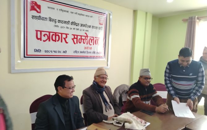 पुरा पढ्नुहोसअखिल नेपाल युवक संघ संघीयता बिरोधि काठमाडौं केन्द्रित आन्दोलनमा होमिने भएको छ।यही माघ ३,४ र ५ गते काठमान्डौमा सम्पन्न बैठकले उक्त निणय गरेको हो। बैठकले गरेका निर्णयहरु सार्बजनिक गर्न युवक संघले प्रेस वक्तव्य समेत...