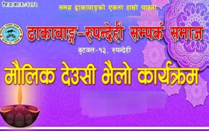 पुरा पढ्नुहोसटेकराज भुसाल, बुटवल। हिन्दुहरुकाे दोस्रो महान चाड दिपावली (तिहार)को अवसरमा पश्चिम अर्घाखाँचीको मौलिक भैली नाच रुपन्देहीका विभिन्न स्थानमा संचालन (प्रदर्शन) हुने भएको छ। ढाकावाङ्ग-रुपन्देही सम्पर्क समाजले अर्घाखाँचीको माैलिकता झल्किने साँस्कृतिक भैली नाच रुपन्देहीका विभिन्न क्षेत्रमा संचालन...