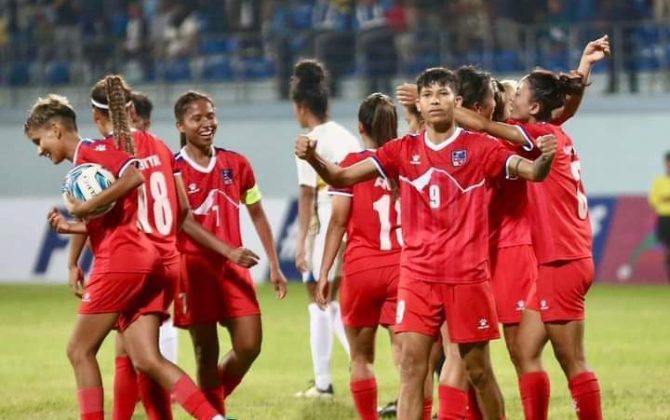 पुरा पढ्नुहोसकाठमाडौं : भारतलाई पराजित गर्दै नेपाल साफ महिला च्याम्पियनसिपको फाइन्लमा प्रवेश गरेको छ। त्रिपुरेश्वरस्थित दशरथ रगंशालामा भएको दोस्रो सेमिफाइनलमा भारतलाई टाइब्रेकरमा ४–२ गोल अन्तरले पराजित गर्दै नेपाल सेमिफाइनलमा पुगेको छ। नेपालको जितमा सावित्रा भण्डारी, गिता राना,...