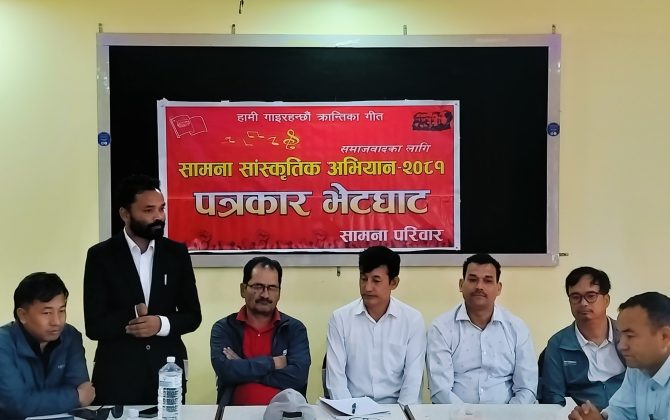 टेकराज भुसाल, बुटवल। समाजवादका लागि सामना साँस्कृतिक अभियान बुटवलमा आएको छ। आज दिउसो १ बजेदेखि लुम्बिनी प्रादेशिक अस्पताल पछाडि रहेको बुटवल उद्योग वाणिज्य संघको सभा हलमा साँस्कृतिक प्रस्तुति प्रस्तुत गर्ने सामना परिवार बुटवल आएको हो। असाेज ११...