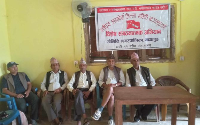 पुरा पढ्नुहोसबागलुङ , २०८१ भाद्र १९गते “गणतन्त्र र राष्ट्रियताकाे रक्षा गराैं ! संघीयताको खारेज गराैं !!´´भन्ने उदघाेष सहित सञ्चालित राष्ट्रिय जनमाेर्चा बागलुङको विशेष संगठनात्मक अभियान बागलुङको बिनामारे, घुश्मेलीमा गरि २ ठाउँमा कार्यक्रम सम्पन्न भएको छ ।...