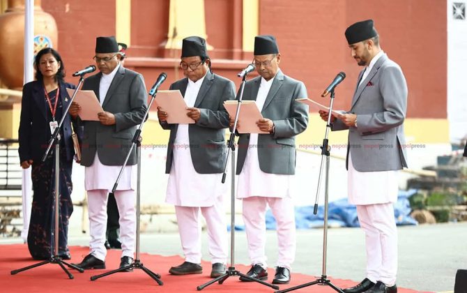 काठमाडौं । अन्तरिम सरकारले थप ४ मन्त्री पाएको छ। प्रधानमन्त्री सुशीला कार्कीको सिफारिसमा नियुक्त अनील कुमार सिन्हा, मदन परियार, जगदीश खरेल र महावीर पुनलाई राष्ट्रपति रामचन्द्र पौडेलले पद तथा गोपनीयताको शपथ गराएका हुन्। यससँगै कार्की नेतृत्वको...