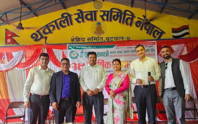 पुरा पढ्नुहोसबुटवल, ४ असोज । धु्रवतारा सयपत्री बचता तथा ऋण सहकारी संस्था लिमिटेड बुटवलको १९ औं वार्षिक साधारणसभा शनिबार एक कार्यक्रमका बीच सम्पन्न भएको छ । सहकारीका अध्यक्ष मान बहादुर कुँवरको अध्यक्षतामा भएको कार्यक्रममा सहकारीका...