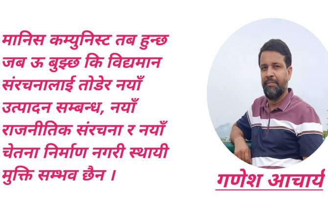 पुरा पढ्नुहोस– गणेश आचार्य नेपालको राजनीति आज अभूतपूर्व तरङ्गमा छ । गणतन्त्र स्थापनाको यति लामो समय बितिसक्दा पनि त्यसले संस्थागत रूप लिन नसकेको यथार्थ हामी सबैका सामु छ । संविधान र संरचनाले लोकतान्त्रिक मूल्य र जनअधिकारलाई...
