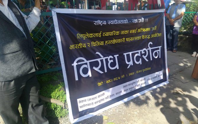 शंकर प्रसाद पोख्रेल पोखरा, भदौ ७। भारत–चीनबीच लिपुलेकलाई व्यापारिक नाका बनाउने सम्झौताको विरोधमा पोखरामा विभिन्न वामपन्थी दल र बुद्धिजीवीहरूले संयुक्त रूपमा विरोध प्रदर्शन गरेका छन्। “राष्ट्रिय स्वाधीनताको रक्षा गरौं” भन्ने नारासहित आयोजित विरोध कार्यक्रममा सहभागीहरूले लिपुलेक, कालापानी...