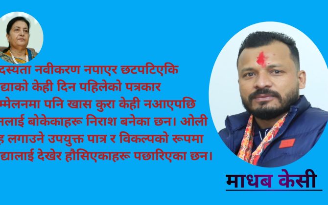 पुरा पढ्नुहोसमाधब केसी नेपाली राजनीतिमा केही समय यता निकै नै चर्चा पाएको एउटा विषय “पूर्व राष्ट्रपति विद्यादेवी भण्डारी राजनीतिमा फर्कन लागेको भन्ने” हो। यो विषयले पछिल्ला केही महिना यता निकै नै चर्चा पायो। चिया, चौतारादेखि भट्टी-पसलसम्म...