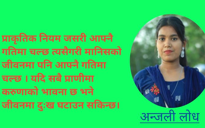 पुरा पढ्नुहोसअन्जली लोध प्राकृतिक नियम भनेको प्रकृतिमा आफै निर्माण भएको नियम हो। यी नियम पृथ्वीमा उत्पन्न हुने सबै जीव र वस्तुहरूमा निरन्तर लागू हुन्छ। प्राकृतिक नियम हामी मान्छेले बनाएको नियम होइन यो नियम प्रकृति निर्मित नियम...
