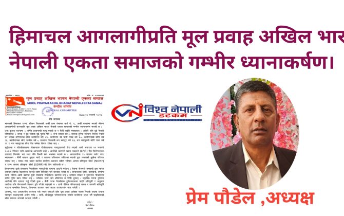 पुरा पढ्नुहोसखिमराज चालिसे, भारत भारतको हिमाचल प्रदेशस्थित सोलन जिल्लाअन्तर्गत अर्की बजारमा भएको भीषण आगलागी घटनाको छानबिन तथा पीडितका पक्षमा पहल गर्न मूल प्रवाह अखिल भारत नेपाली एकता समाजको प्रतिनिधिमण्डल घटनास्थलमा पुगेको छ। मूल प्रवाहका केन्द्रीय सदस्य नेत्रबहादुर...