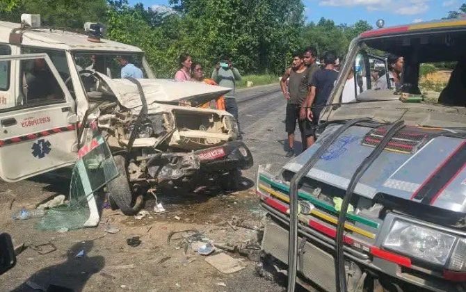 पुरा पढ्नुहोसरुपन्देही पूर्व ,पश्चिम राजमार्ग अन्तर्गत कपिलवस्तुको बुद्धभूमि नगरपालिका-२ गोरुसिङ्गे स्थित जंगलमा एम्बुलेन्स र विंगर आपसमा ठोक्किँदा एक वृद्धाको मृत्यु भएको छ भने १० जना घाइते भएका छन्। जिल्ला प्रहरी कार्यालय, कपिलवस्तुका अनुसार सोमबार दिउँसो करिब ४...