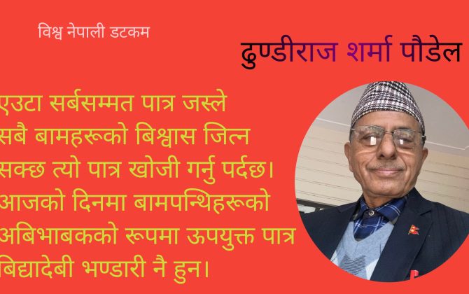 पुरा पढ्नुहोस“हजारौं जनता मूर्ख भएर खास फरक पर्दैन,तर एऊटै मूर्ख शाषक भयो भने देशले नपाऊने दुख पाऊॅछ”अब्राहमलिंकनको भनाई।आज देशले ठीक यही भोगिरहेको अवस्था छ।राज्यका अंगहरू कार्यपालीका ,ब्यबस्थापिका,न्यायपालीका लथालिंग भताभूंग अवस्थामा छन।राज्य प्रति जनताको भर बिश्वास...