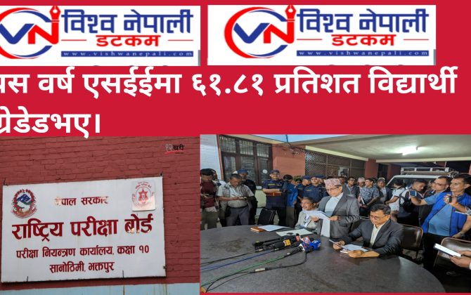 पुरा पढ्नुहोसकाठमाडौं । माध्यमिक शिक्षा परीक्षा (एसईई)को नतिजा सार्वजनिक भएको छ । नतिजाअनुसार, ३.६ देखि ४ सम्म ४८१७७ जना, जिपिए ३.२ देखि ३.६ सम्म ८१३८५ जना, जिपिए २.८ देखि ३.२ सम्म ८९१२४ जना, जिपिए २.४ देखि २.८...
