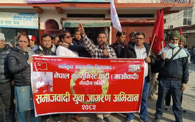 पुरा पढ्नुहोससमाजवादी युवा जगरण अभियान बुटवलमा विनोद खनाल, बुटवल नेकपा (माओवादी) का पोलिटब्युरो सदस्य तथा प्रमुख अतिथि बसन्त श्रेष्ठ ले नेपालको राष्ट्रिय स्वाधीनता गम्भीर खतरामा परेको बताउँदै त्यसको रक्षाका लागि हरेक नागरिक राष्ट्रिय मुक्ति सेना बन्न तयार...