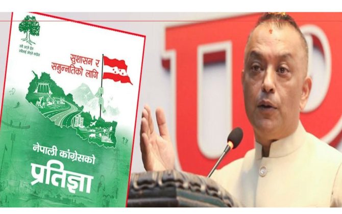पुरा पढ्नुहोसकाठमाडौँ । प्रतिनिधिसभा निर्वाचन नजिकिँदै गर्दा नेपाली कांग्रेसले २०० पृष्ठ लामो विस्तृत प्रतिज्ञापत्र सार्वजनिक गरेको छ। बिहीबार सार्वजनिक गरिएको उक्त दस्तावेजमा सुशासन, भ्रष्टाचार नियन्त्रण, आर्थिक पुनरुत्थान र रोजगारी सिर्जनालाई मुख्य प्राथमिकतामा राखिएको छ। सुशासन र...