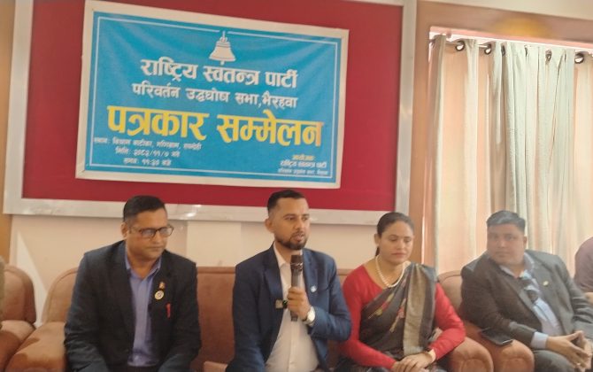 पुरा पढ्नुहोसभैरहवा, – राष्ट्रिय स्वतन्त्र पार्टी (रास्वपा) ले आगामी फागुन ९ गते रुपन्देहीको भैरहवास्थित अञ्चलपुर प्रदर्शनी स्थलमा ‘परिवर्तन उद्घोष सभा’ आयोजना गर्ने भएको छ। पार्टीले पत्रकार सम्मेलन गरी सभाको तयारी तीव्र पारिएको जनाएको छ। मूल आयोजक...