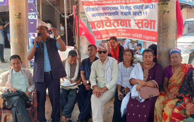 पुरा पढ्नुहोसकमल पौडेल प्युठान। राष्ट्रिय जनमोर्चा जिल्ला समिति प्युठानले सञ्चालन गरेको प्रतिगमन विरुद्धको सभा आज सरुमारानी गाउँपालिकाको दरबारमा सम्पन्न भएको छ। राष्ट्रिय जनमोर्चा जिल्ला समिति गठनका सल्लाहकार कुलदेव जिसीको अध्यक्षतामा सुरु भएको कार्यक्रममा राष्ट्रिय जनमोर्चा लुम्बिनी...