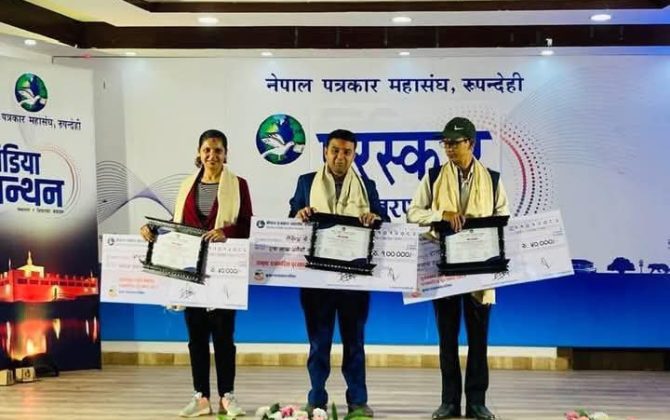 पुरा पढ्नुहोसबुटवल, १२ बैशाख । नेपाल पत्रकार महासंघ रुपन्देहीले प्रदान गर्ने उत्कृष्ट पत्रकारिता पुरस्कार रातोपाटी डटकमका लुम्बिनी प्रदेश संवाददाता तेजेन्द्र केसीलाई प्रदान गरेको छ । विहिबार एक कार्यक्रमको आयोजना गरी उत्कृष्ट पत्रकारिता पुरस्कार बुटवल उपमहानगरपालिकाका नगरप्रमुख...
