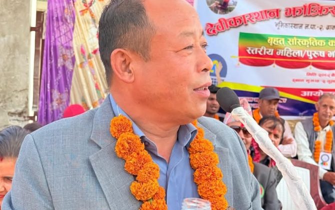 पुरा पढ्नुहोसटेकराज भुसाल, अर्घाखाँची। जिल्लाकाे भूमिकास्थान नगरपालिका वार्ड नम्बर २ ढाकावाङ्गमा रहेको देविकास्थान झाक्रिशाला टाेल बिकास संस्थाको आयोजनामा नववर्ष विशेष साँस्कृतिक तथा विविध खेलकुद कार्यक्रम शुरु भएको छ। कार्यक्रमको साेमबार नववर्षकाे अवसर पारि भूमिकास्थान नगरपालिकाका नगरप्रमुख झविलाल...