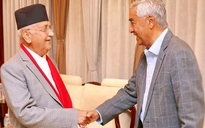 ५ वैशाख, काठमाडौं । गभर्नर नियुक्तिमा कांग्रेस र एमालेबीच कुरा नमिलेका कारण गठबन्धनमै समस्या आउनेसम्मका आकलन भइरहँदा प्रधानमन्त्री केपी शर्मा ओली र कांग्रेस सभापति शेरबहादुर देउवाले यो विषयलाई प्याकेज नै बनाएर टुंग्याएका छन् । ओली...