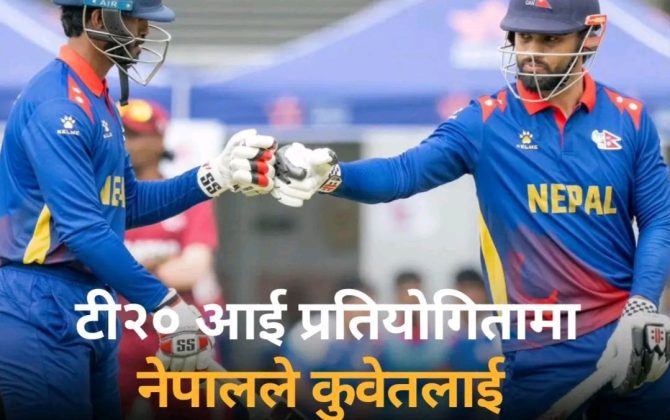 नेपालको राष्ट्रिय क्रिकेट टोलीले चार राष्ट्र सम्मिलित टी२० आई प्रतियोगिताको दोस्रो खेलमा कुवेतलाई ६ विकेटले पराजित गरेको छ। जारी प्रतियोगितामा नेपालको यो दोस्रो जित हो। हिजो भएको पहिलो खेलमा नेपालले कतारलाई ८ विकेटले हराएको थियो। नेपाल...