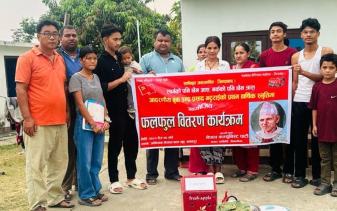 पुरा पढ्नुहोसविनोद खनाल, बुटवल नेकपाका केन्द्रीय सदस्य विश्वास सीका बुवा ईन्द्र प्रसाद भट्टराईको प्रथम बार्षिक स्मृति बालगृहमा फलफुल तथा खाद्यान्न बितरण गरी मनाईएकोछ । “स्वर्गको पनि छैन आश नर्कको पनि छैन त्राश” भन्दै परम्परागत रुपमा श्राद्ध गरी...