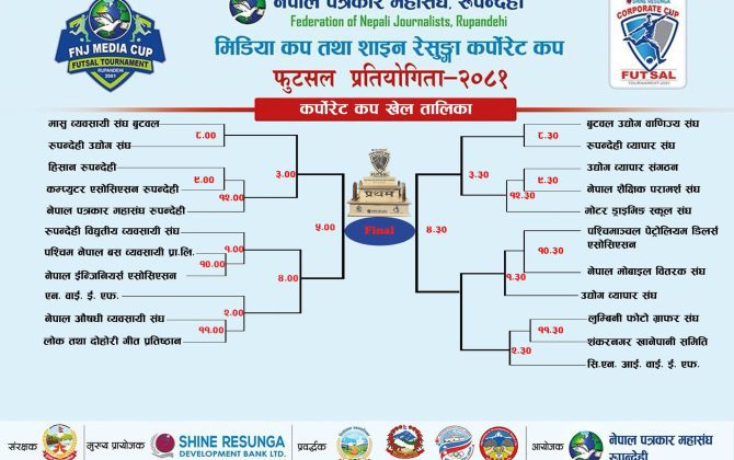 पुरा पढ्नुहोसबुटवल । नेपाल पत्रकार महासंघ रुपन्देहीको आयोजनामा आजदेखि बुटवलमा साइन रेसुङ्गा कर्पोरेट कप तथा मिडिया कप फुटसल प्रतियोगिता सुरु हुँदै छ । महासंघको ७० औँ स्थापना दिवसको अवसरमा आयोजना गरिएको प्रतियोगिता अन्तरगत आज आइतबार...