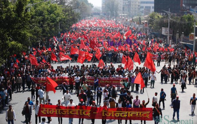 पुरा पढ्नुहोसकाठमाडौँ । शुक्रबार काठमाडौँको प्रदर्शनीमार्गमा गणतन्त्र पक्षधर समाजवादी मोर्चा र तीनकुनेमा व्यवस्था उल्टाउन लागि परेका पूर्वराजा समर्थकले प्रदर्शन गर्दै छन् । समाजवादी मोर्चामा आबद्ध नेकपा (माओवादी केन्द्र), नेकपा (एकीकृत समाजवादी), नेपाल समाजवादी पार्टी र...