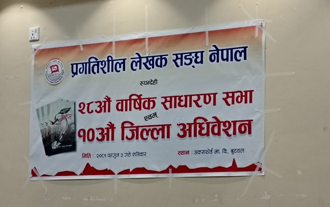 पुरा पढ्नुहोसप्रगतिशील लेखक सङ्घ, नेपाल रूपन्देहीको २८औँ वार्षिक साधारणसभा तथा १०औँ अधिवेशन शनिबार बुटवलमा सम्पन्न भएको छ। अधिवेशनले कृष्ण गाउँलेको अध्यक्षतामा नयाँ जिल्ला कार्यसमिति चयन गरेको छ। निर्वाचित कार्यसमितिमा उपाध्यक्ष सुवास रिजाल, हिरालाल धामी र ज्ञानु...