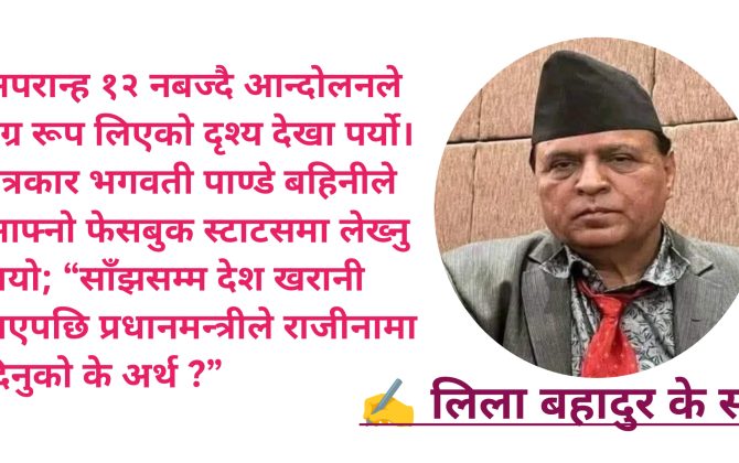 पुरा पढ्नुहोस✍️ लिला बहादुर के सी २०८२ साल भाद्र २३ गते जेन्जी पुस्ताले काठमाण्डूको माइतिघर मण्डलाबाट नेपालमा भ्रष्टाचार विरुद्ध शान्तिपूर्ण आन्दोलन सुरु गर्यो। यो आन्दोलनबारे दुई तीन दिन अघिदेखि सामाजिक सञ्जालमा केही पोस्टरहरु यसका प्रयोगकर्ताले देखेका...