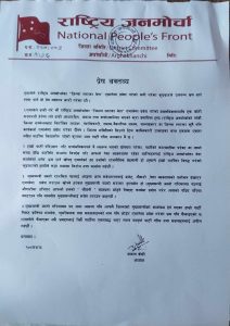 “हाम्रो पार्टी परित्याग गरी सार्वजनिक रूपले नै स्वतन्त्र भएको घोषणा गरेका, पार्टीको कारबाहीमा परेका वा लामो समयदेखि पार्टीसँग सम्बन्धविच्छेद गरी आफ्नो पेसाव्यवसायमा रहेको व्यक्तिहरूलाई राष्ट्रिय जनमोर्चाका नेताकार्यकर्ता भनेर भ्रम छर्नु एमालेको हद दर्जाको राजनीतिक बेइमानी हो” वक्तव्यमा भनिएको छ– “एमालेले हाम्रो पार्टीका विरुद्ध गरेको कुप्रचारको हामीले कडा शब्दमा विरोध तथा भर्त्सना गर्दछौँ ।”