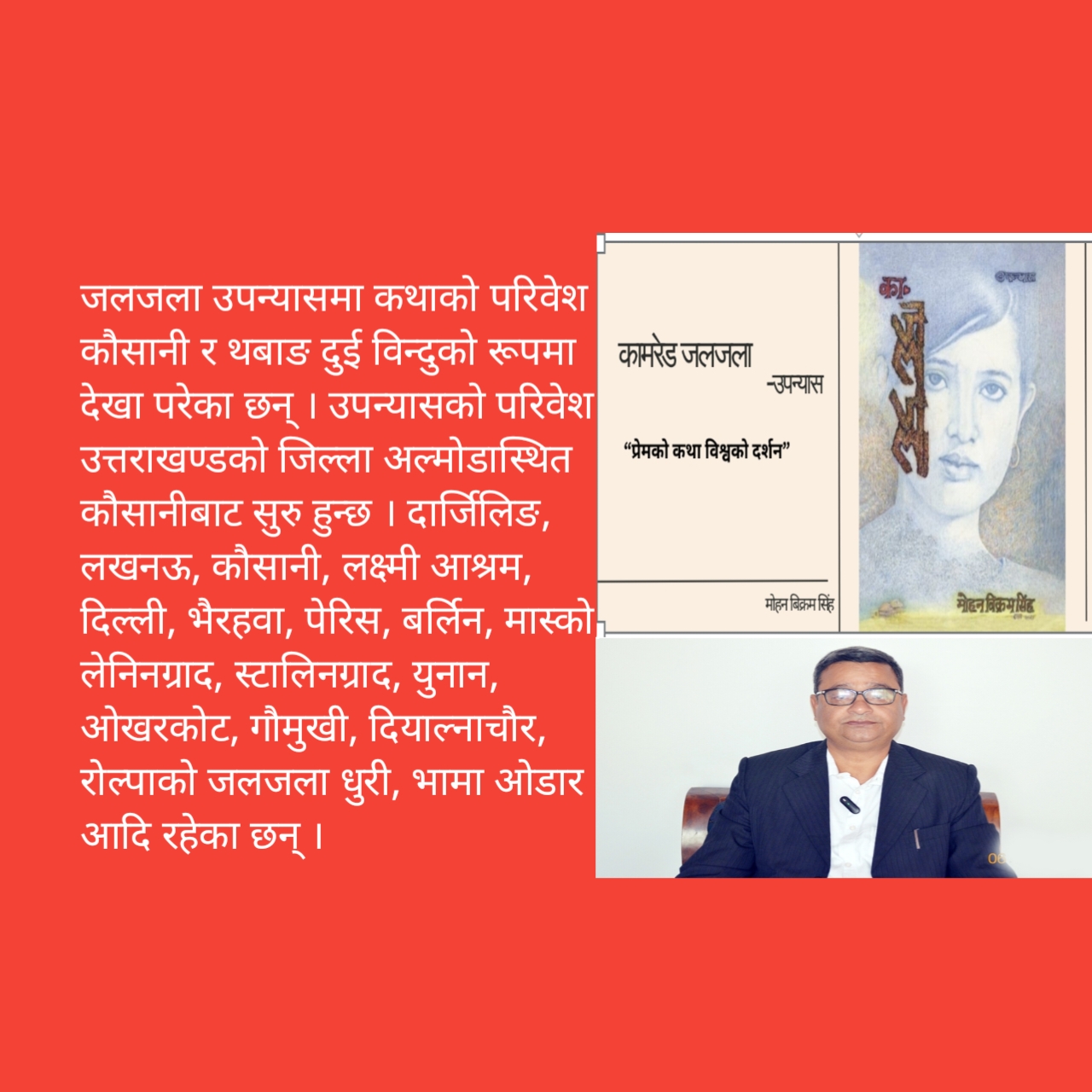 मेरो साहित्यसम्बन्धी ज्ञान प्रारम्भिक प्रकारको छ । त्यसैले यहाँ व्यक्त विचारले साहित्यिक दृष्टिकोणले खासै कुनै महत्त्व राख्दैन । साहित्यसम्बन्धी आधिकारिक सोचाइको पनि प्रतिनिधित्व गर्दैन तैपनि मोहनविक्रम सिंहको हालै २०८१ मङ्सिर १५ गते विमोचन गरिएको उपन्यास “कामरेड जलजला” माथि आफ्ना विचार प्रस्तुत गर्ने प्रयत्न गरेको छु तर यो लेखमा व्यक्त विचार उपन्यासमाथिको विवेचना वा समक्षिा होइन ।