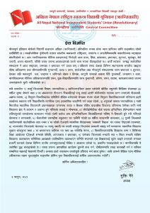 काठमाडौं : आफ्नो शैक्षिक एवम् मौलिक अधिकारका पक्षमा दृढतापूर्वक सङ्घर्षमा होमिन युवा विद्यार्थीहरूलाई अखिल नेपाल राष्ट्रिय स्वतन्त्र विद्यार्थी युनियन(क्रान्तिकारी) केन्द्रीय समितिले आह्वान गरेकाे छ । संगठनका केन्द्रीय अध्यक्ष मुक्ति गैरेले आज एक विज्ञप्ति जारी गर्दै नागरिकमाथि नै अघोषित युद्ध चलाइरहेको समेत बताएका छन् । विज्ञप्तिमा भनिएको छ।