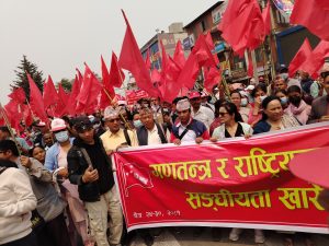 ‘काठमाडौँ तीन हप्तापहिलेदेखि सङ्घीयता विरोधी आन्दोलनमा छ’ उहाँले भन्नुभयो–‘अहिले काठमाडौँका भुइँमान्छेले सङ्घीयता विरोधको कुरा सुनिरहेका छन् ।’