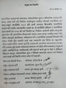 निर्वाचन आयोगले स्वमुल्याङ्कनको नाममा राजनितिक दलको स्वायत्तता माथी गरेको हस्तक्षेपकारी कदमका विरुद्ध