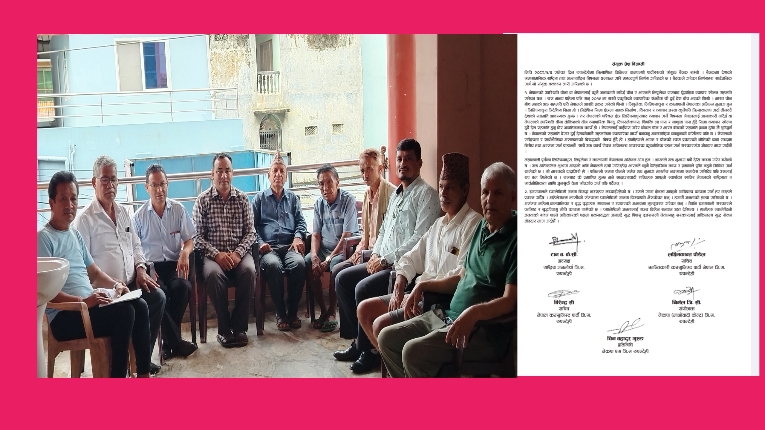 संयुक्त विज्ञप्तिमा हस्ताक्षर गर्ने दल र नेताहरू :