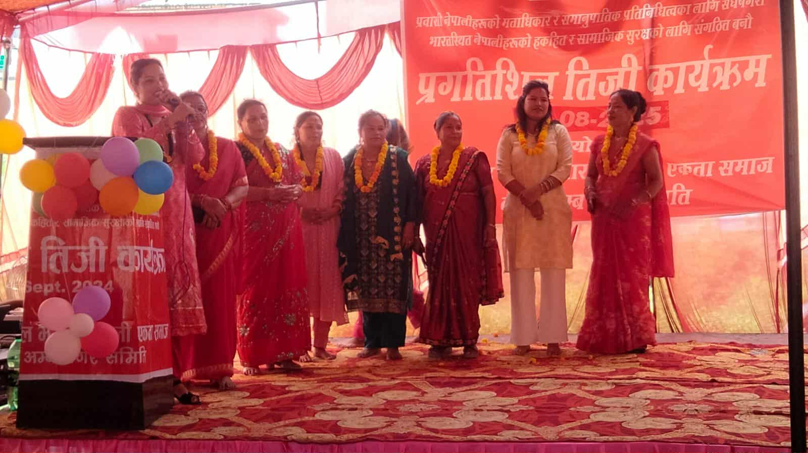 तिजी कार्यक्रम बलराज काल्चेको अध्यक्षतामा तथा सरिता खत्रीको संचालनमा सम्पन्न भएको थियो भने सितल भन्डारी र कलाकारहरुले स्वागत गरेका थिए।
