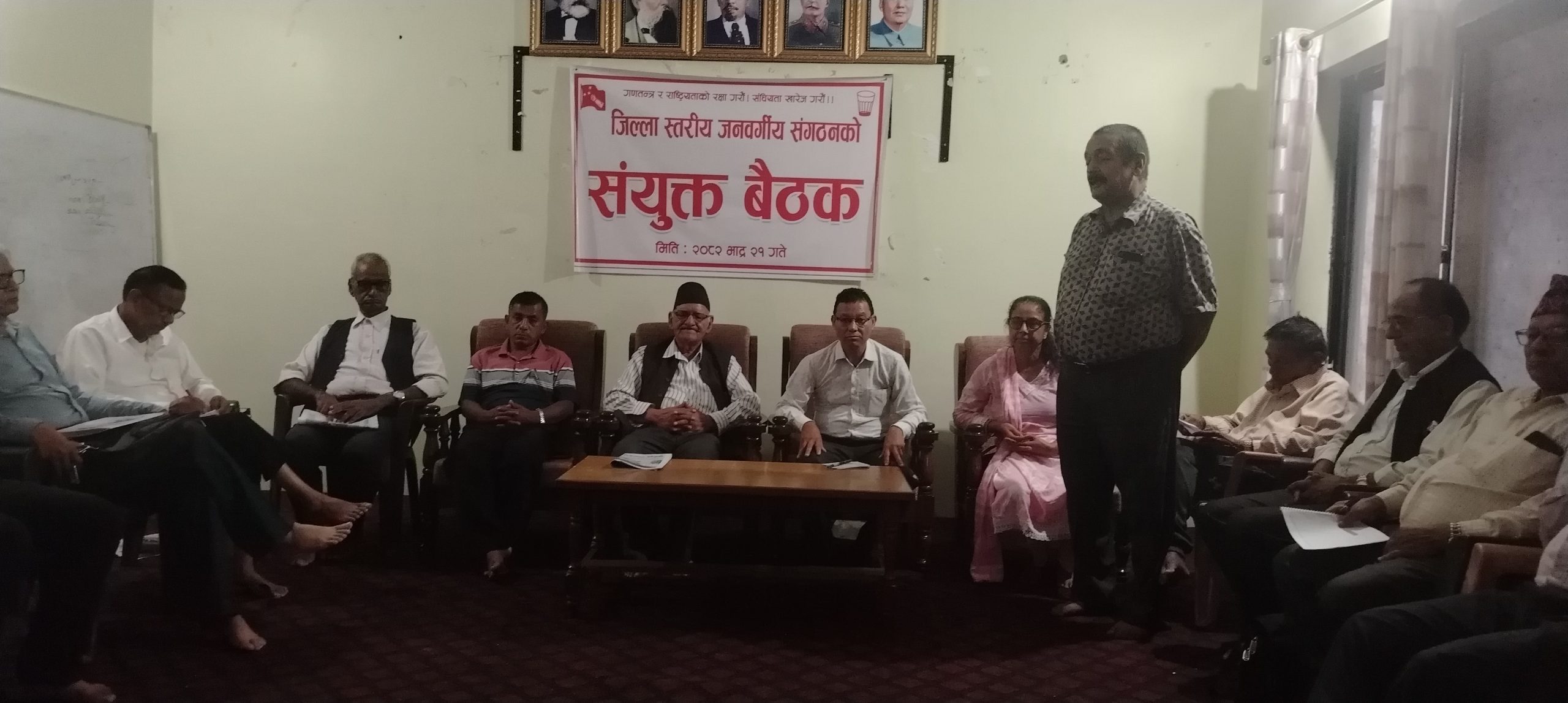 संयुक्त भेलाको उद्देश्य र एजेण्डाबारे कम्युनिष्ट संग्रहालयका अध्यक्ष चेतनाथ आचार्यले विस्तृत जानकारी दिनुभयो। उहाँले पार्टी र संगठनबीचको सहकार्य नै जनआन्दोलनलाई सशक्त बनाउन अपरिहार्य रहेको धारणा राख्नुभयो।