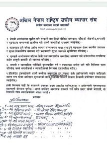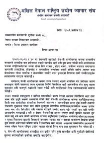 अखिल नेपाल राष्ट्रिय उद्योग व्यापार संघले प्रधानमन्त्रीसमक्ष राखेका प्रमुख मागहरू यसप्रकार छन् —