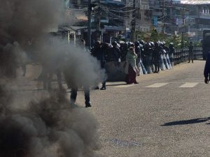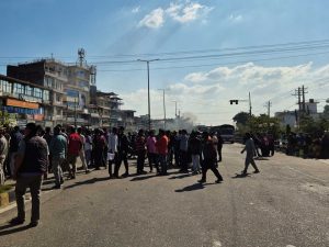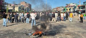 झडपपछि आक्रोशित जेनजी समूहका प्रदर्शनकारीले विमानस्थल छिर्ने मार्ग अगाडि टायर बालेर सडक अवरुद्ध गरेका छन्। धुँवा र भीडका कारण आसपासको वातावरण तनावपूर्ण बनेको छ। पुलिस परिचालन गर्दै प्रदर्शनस्थल खाली गर्न पटक–पटक आग्रह गरिए पनि प्रदर्शनकारी त्यसैगरी उत्रिएका छन्।