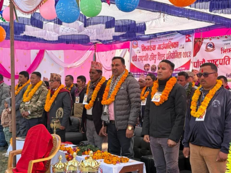 प्युठान । झिमरुक गाउँपालिकाको आयोजनामा झिमरुक गाउँपालिका स्तरीय पाँचौँ राष्ट्रपति रनिङ शिल्ड प्रतियोगिता आजदेखि सुरु भएको छ। झिमरुक नदीको किनारमा रहेको मैनाके खेल मैदानमा आयोजित उद्घाटन समारोह जिल्ला समन्वय समिति प्युठानका प्रमुख धरम बहादुर जी.सी. को प्रमुख आतिथ्यतामा सम्पन्न भयो।