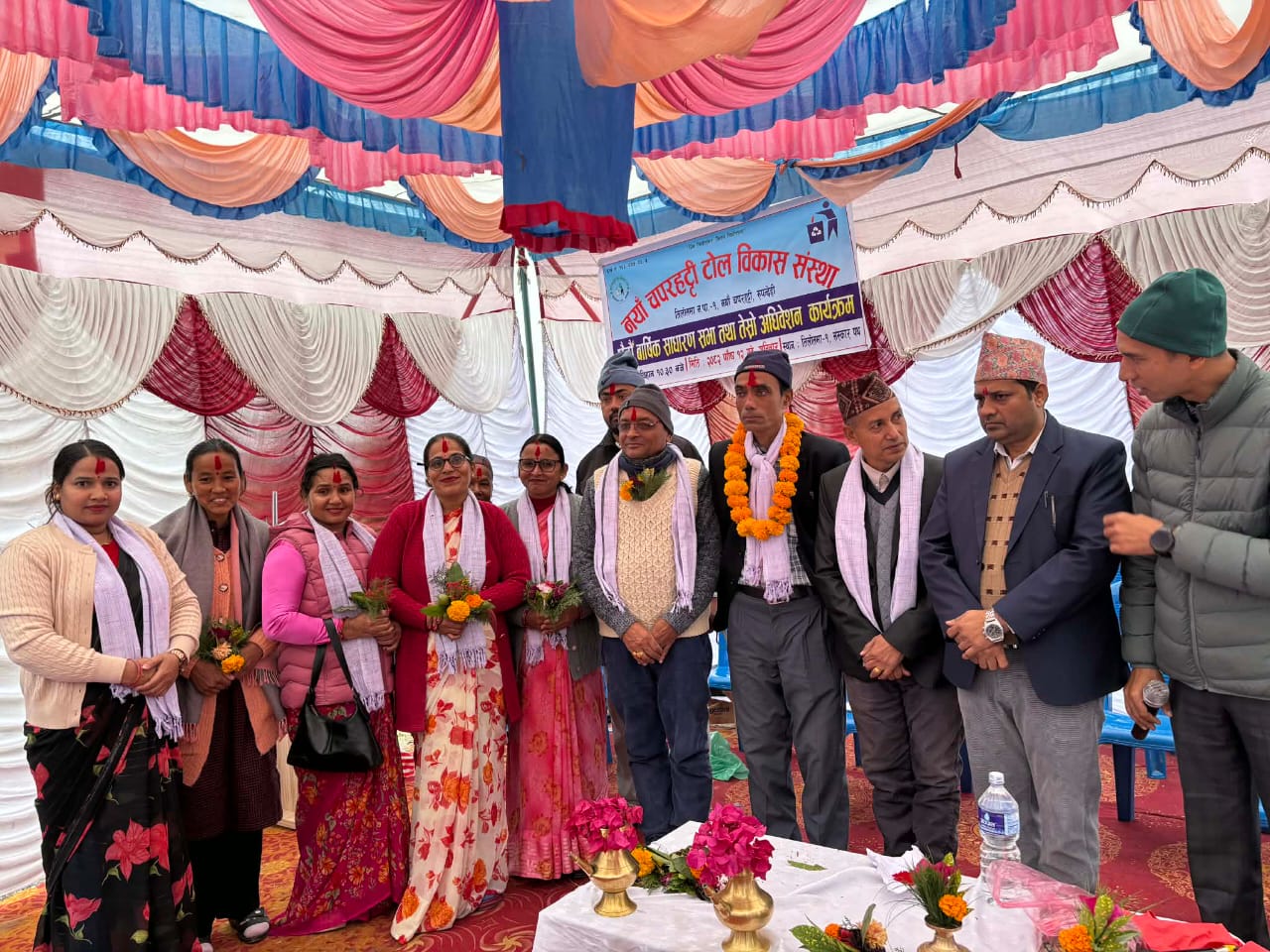 रुपन्देही जिल्लाको तिलोत्तमा नगरपालिका–१ स्थित नयाँ चपरहट्टी टोल विकास संस्थाको छैटौँ वार्षिक साधारणसभा तथा तेस्रो अधिवेशन सफलतापूर्वक सम्पन्न भएको छ। स्थानीयस्तरमा सामाजिक सद्भाव, पूर्वाधार विकास तथा सरसफाइलाई प्राथमिकता दिँदै आएको उक्त संस्थाको अधिवेशनले कृष्णप्रसाद कँडेलको अध्यक्षतामा नयाँ कार्यसमिति सर्वसम्मत रूपमा निर्वाचित गरेको छ।