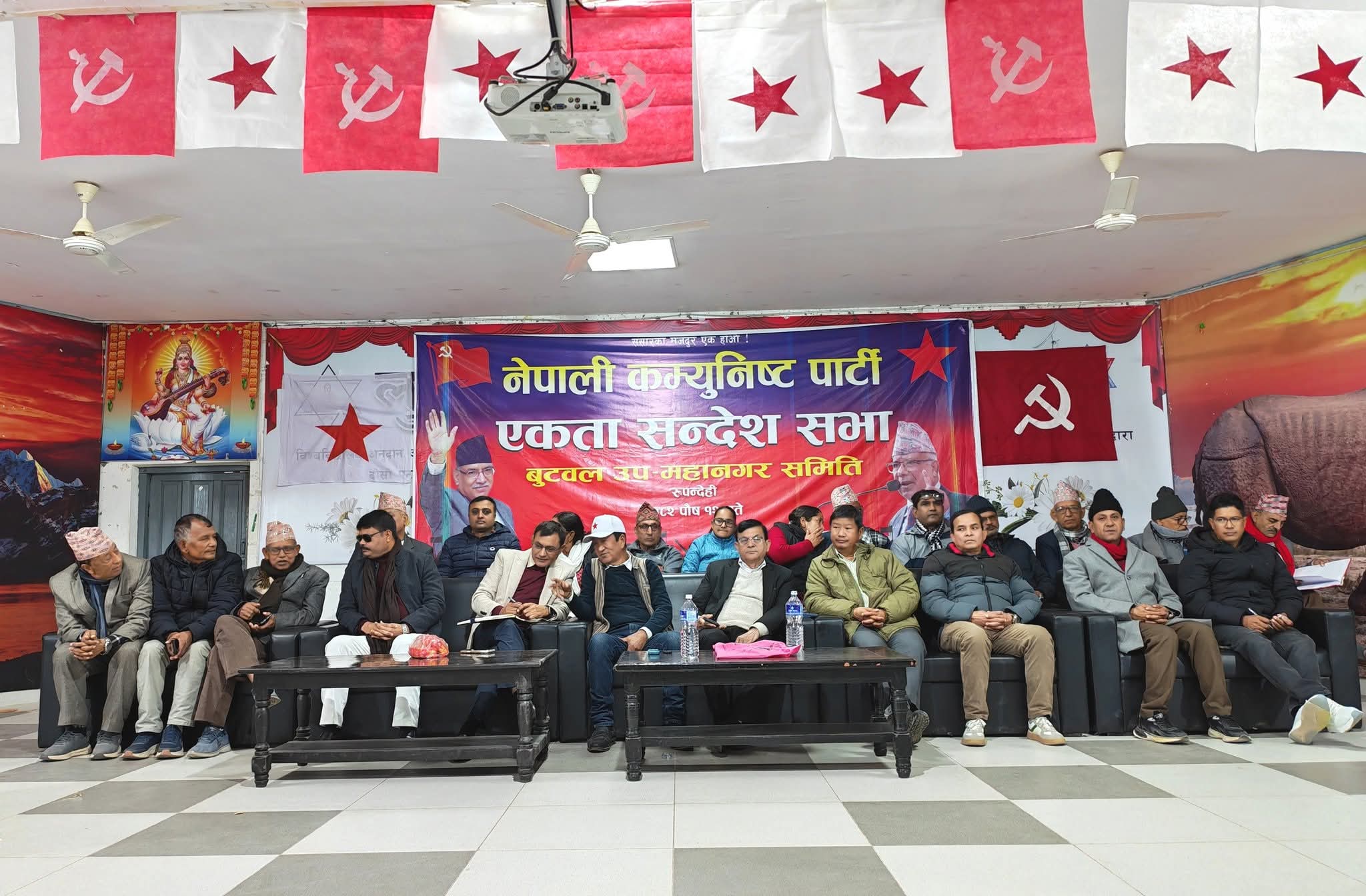 बुटवल । नेपाली कम्युनिस्ट पार्टीको बुटवल उपमहानगर स्तरीय एकता सन्देश सभा हिजो भव्य रूपमा सम्पन्न भएको छ।