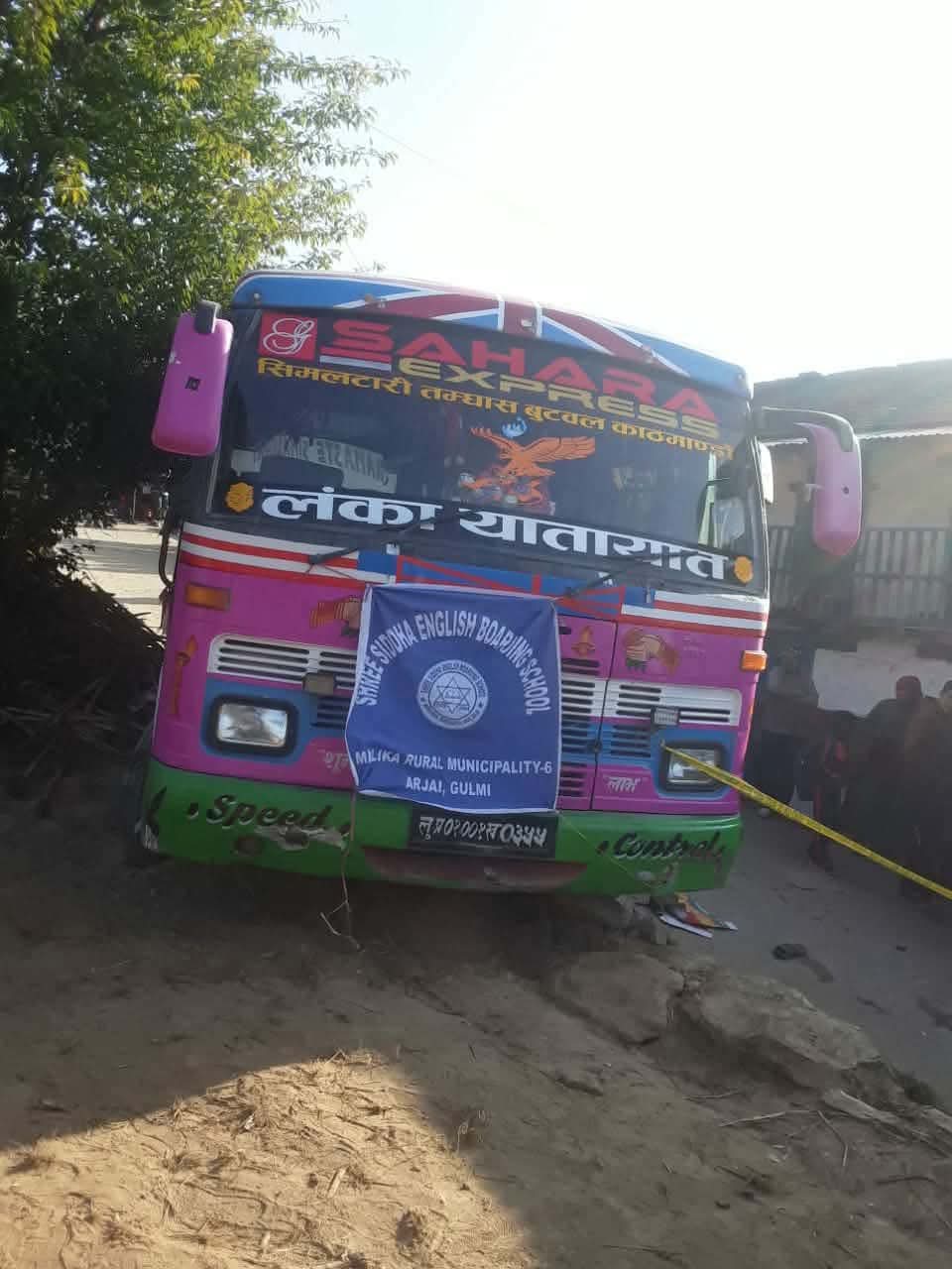 गुल्मिको मालिका गाउँपालिका–६ स्थित अर्जै राम्चेमा भएको भीषण सडक दुर्घटनामा दुई जनाको ज्यान गएको छ।