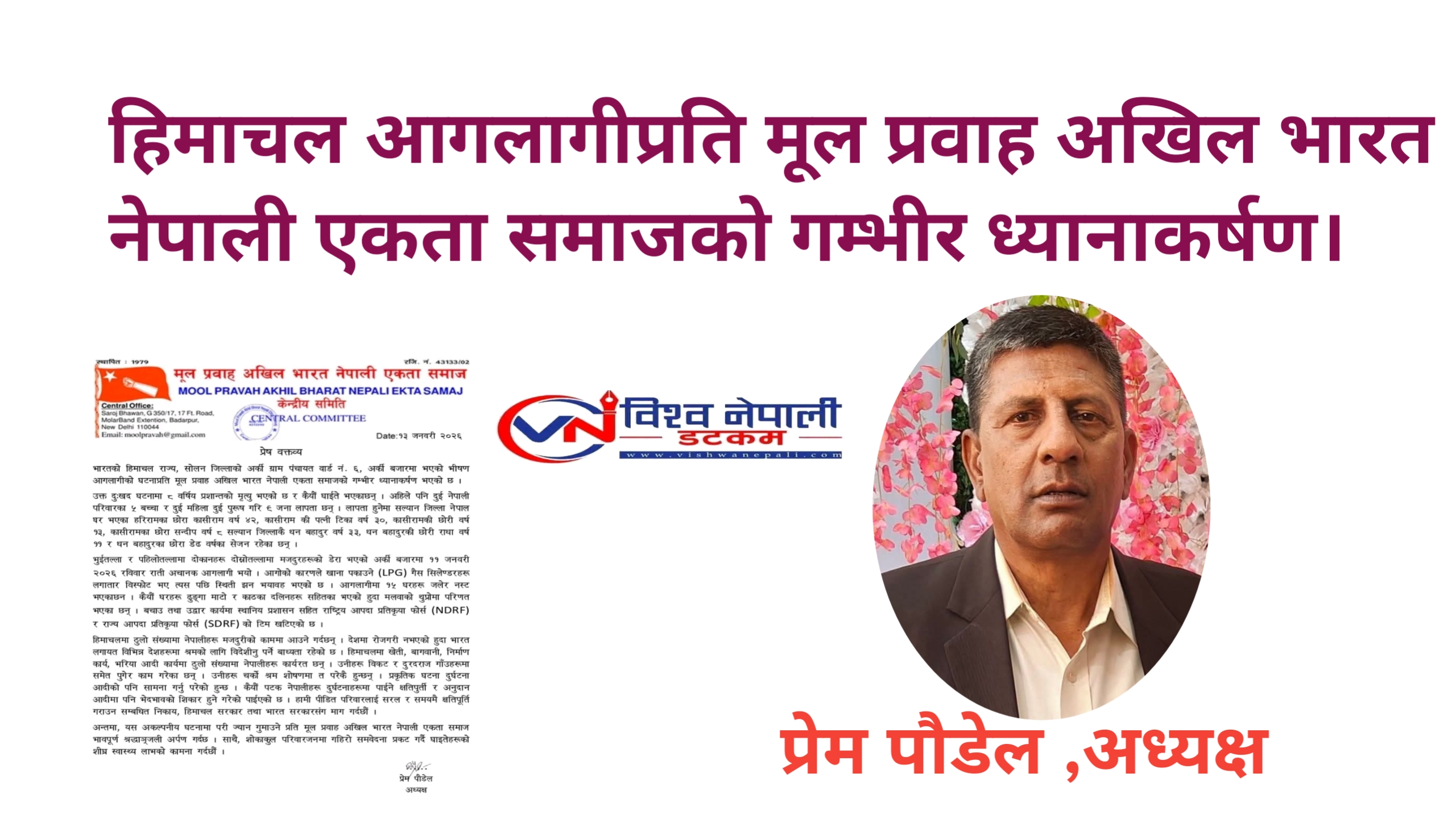 हिमाचल प्रदेशमा ठूलो संख्यामा नेपालीहरू कृषि, बगैंचा, निर्माण तथा मजदुरी पेशामा संलग्न रहेको उल्लेख गर्दै वक्तव्यमा जोखिमपूर्ण काम, न्यून सुविधा र प्राकृतिक प्रकोपका कारण नेपाली मजदुरहरू बारम्बार दुर्घटनामा पर्ने गरेको जनाइएको छ।
