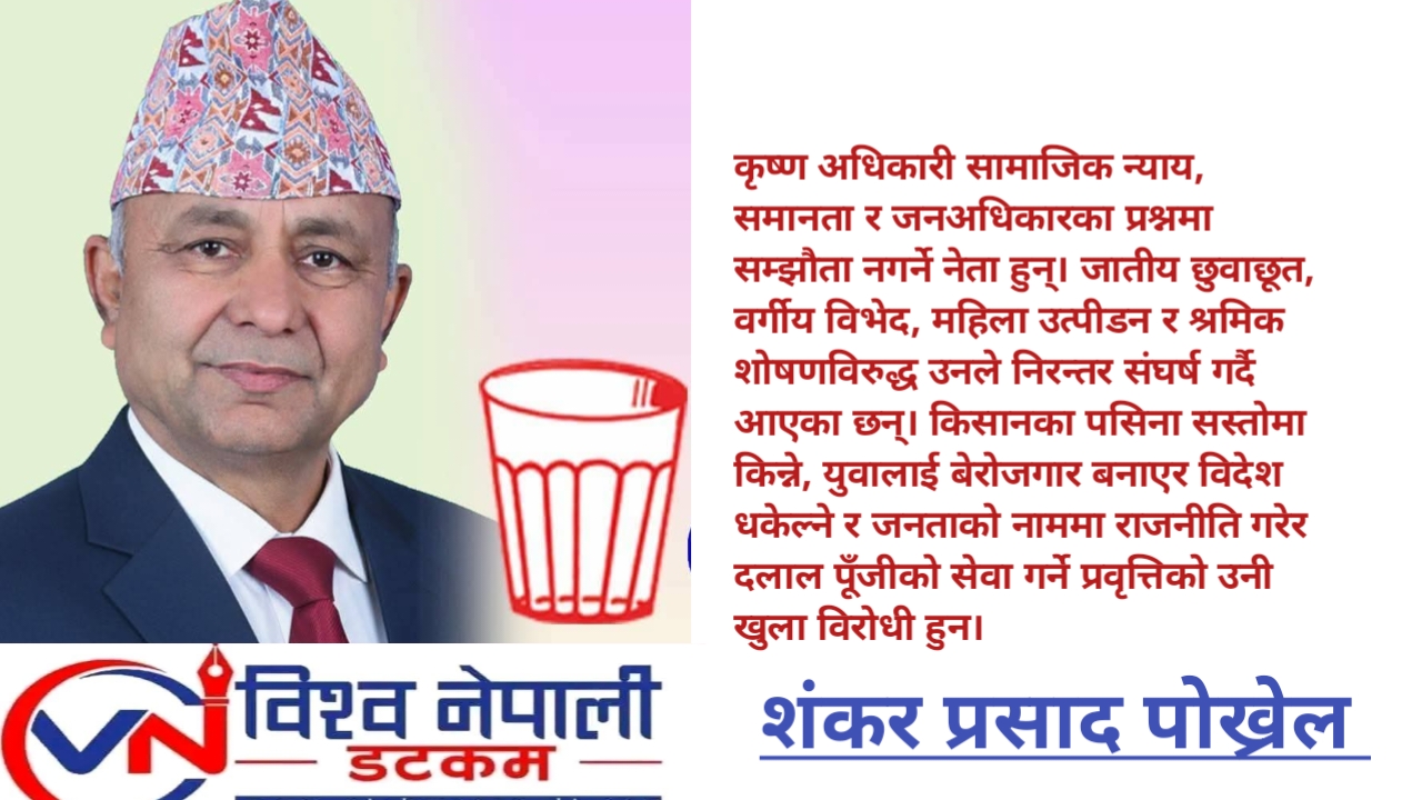कृष्ण अधिकारी कुनै हावादारी उम्मेदवार होइनन्। उनी नेपाली कम्युनिष्ट आन्दोलनको भट्टीमा खारिएका, संघर्षबाट उठेका र जनताको पक्षमा उभिएका नेता हुन्। विद्यार्थी आन्दोलनबाट राजनीतिमा होमिएका अधिकारीले जीवनभर शोषण, दमन र अन्यायविरुद्ध संघर्ष गर्दै आएका छन्। संसदलाई सौदाबाजीको थलो बनाउनेहरूका लागि उनी चुनौती हुन्, र जनताको आवाज दबाउने शक्तिहरूका लागि उनी खतरा हुन्।