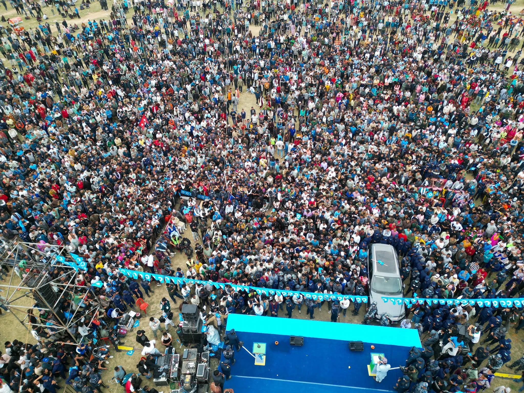 सभास्थल आसपासका सडक, घरका छत र होटलका झ्यालसम्म दर्शकले भरिएका थिए। विभिन्न पृष्ठभूमिका नागरिक—युवादेखि ज्येष्ठसम्म—सभामा देखिनुले ‘नयाँ विकल्प’ खोज्ने मनोविज्ञान बलियो बन्दै गएको संकेत मानिएको छ।