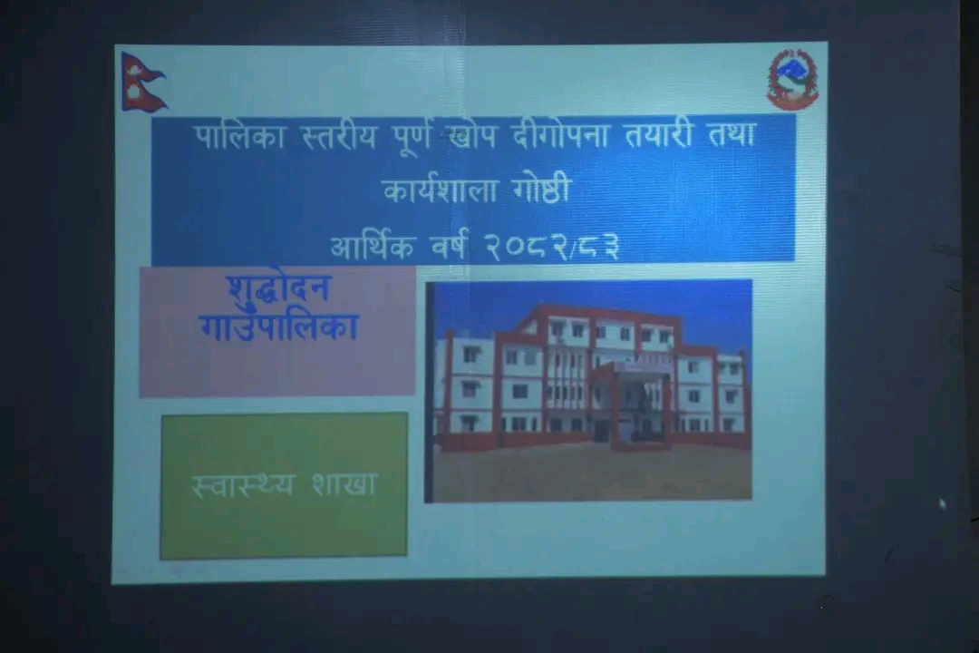 रुपन्देही — रुपन्देहीको शुद्धोदन गाउँपालिकामा गाउँपालिका स्तरीय पूर्ण खोप दीगोपना तयारी तथा कार्यशाला गोष्ठी कार्यक्रम सम्पन्न भएको छ। बुधबार गाउँपालिकाको सभा हलमा आयोजित कार्यक्रममा जनप्रतिनिधि, स्वास्थ्यकर्मी, महिला स्वास्थ्य स्वयंसेविका तथा सरोकारवालाको उल्लेखनीय सहभागिता रहेको थियो।