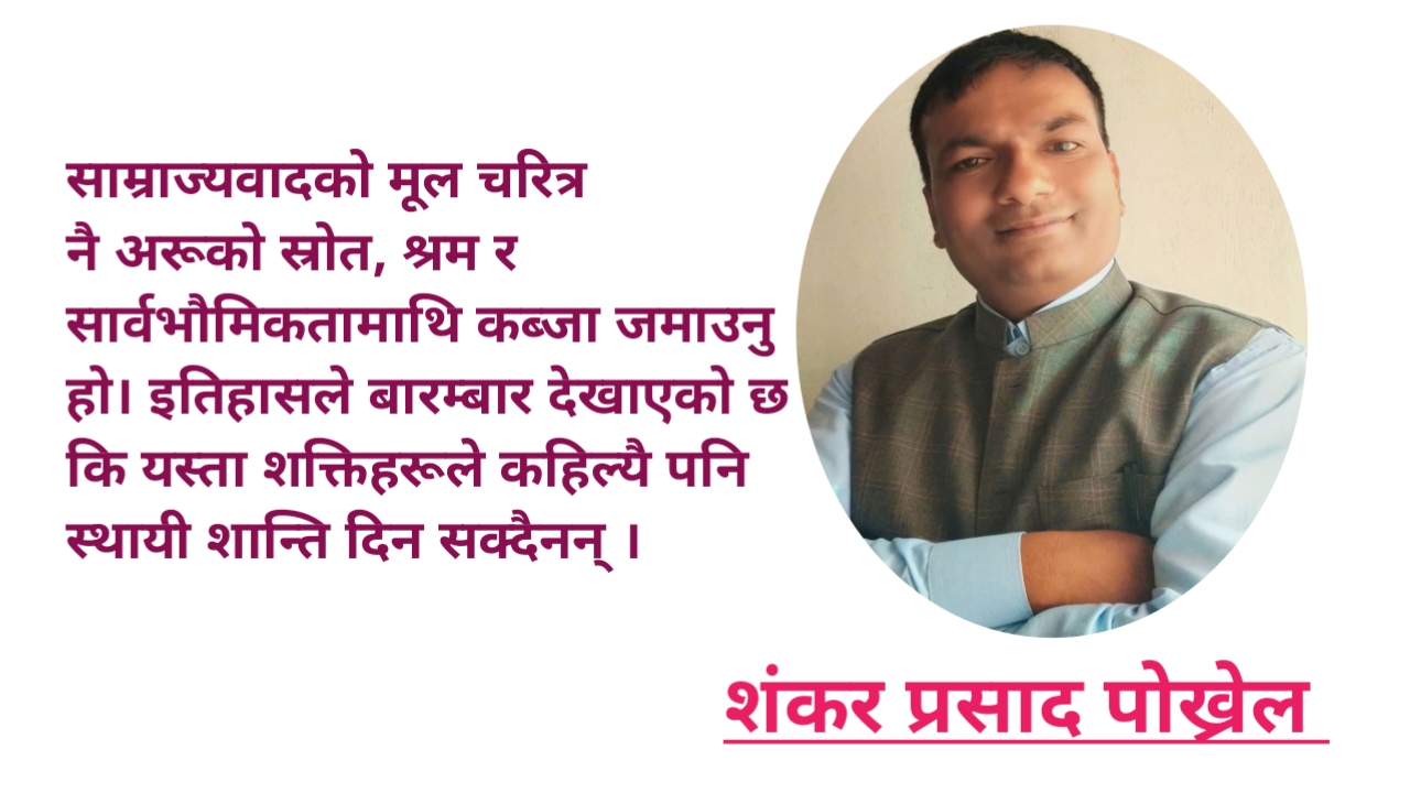 साम्राज्यवादको मूल चरित्र नै अरूको स्रोत, श्रम र सार्वभौमिकतामाथि कब्जा जमाउनु हो। इतिहासले बारम्बार देखाएको छ कि यस्ता शक्तिहरूले कहिल्यै पनि स्थायी शान्ति दिन सक्दैनन्। उनीहरूको नीति सधैं विभाजन, द्वन्द्व र अस्थिरतामा आधारित हुन्छ। त्यसैले विश्व शान्तिका लागि साम्राज्यवादविरुद्ध एकजुट हुनु आजको आवश्यकता हो।
